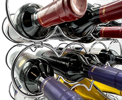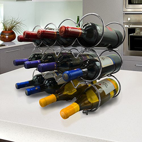 - 3-TIER WINE RACK (SILVER) — Showcase, organize, and store up to 12 wine bottles — Decorative freestanding wine rack is stackable and ideal for both new wine collectors and expert connoisseurs