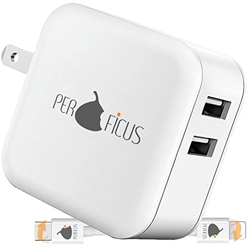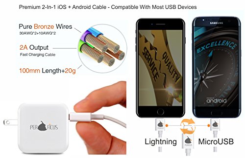 PERFICUS 24W 4.8A (2 x 2.4A) Dual USB Wall Charger Adapter Set - Safe & Fast PER-Smart Tech - Overcharge & Overheat Protection - 2-In-1 iOS + Android Cable - for iPhone, Galaxy and Most USB Devices