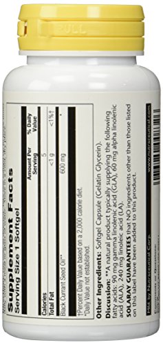 -. Binding : Health and Beauty -. Brand : Solaray -. EAN : 0076280008326 -. Feature : Contains other important fatty acids such as alpha linolenic acid and stearidonic acid / Cold-pressed / No solvents have been used -. IsAdultProduct : 0 -. Label : Solaray -. LegalDisclaimer : These statements have not been evaluated by the Food & Drug Administration. This products is not intended to diagnose, cure, mitigate, treat, or prevent any disease. -. Manufacturer : Solaray -. Model : 076280008326 -. MPN : S832 -. NumberOfItems : 1 -. PackageQuantity : 1 -. PartNumber : S832 -. ProductGroup : Health and Beauty -. ProductTypeName : HEALTH_PERSONAL_CARE -. PublicationDate : 2014-10-20 -. Publisher : Solaray -. ReleaseDate : 2015-03-19 -. Size : 90 -. Studio : Solaray -. Title : Solaray Hexane Free Black Currant Seed Oil Gla, 90 mg, 90 Count -. UPC : 076280008326