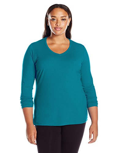 Just My Size Women's Plus Size Vneck Long Sleeve Tee
