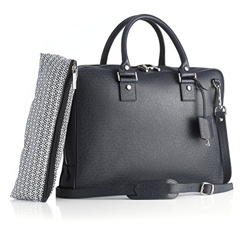 Product Description Luxurious yet modern, the Mark Giusti Milano Essential Laptop Bag is a one of a kind handmade briefcase no professional should be without. The beautiful leather and extravagant lining will stand out in any crowd of bags. The interior features space for your laptop and a removable pouch fit for accessories and wires. Keeping it simple, you are provided with a lock and key for extra protection against outsiders. This bag is perfect for everyone with the option to carry this bag by its leather carry handles or shoulder strap or slip over any telescoping handle with its sleeve. 0