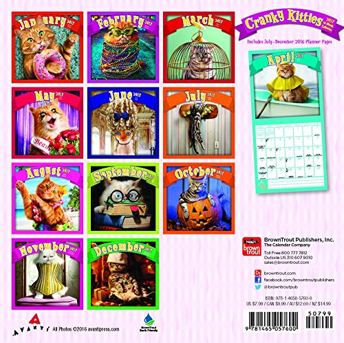 -. Feature : This mini 18-month wall calendar measures just 7" x 7", which makes it perfect for small spaces. / BrownTrout Publishers is teaming up with Avanti Press, the company that takes funny very seriously, to bring you this delightful Cranky Kitties calendar. It's the catâ€TMs meow with these roguish felines who have gone from purring to grumbling. You'll find yourself rip-roaring with laughter with this quirky Cranky Kitties mini calendar.