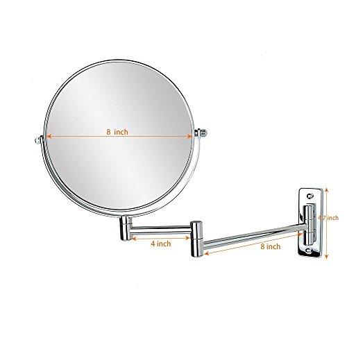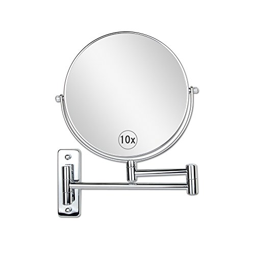 Naturous 8-Inch Two-Sided Swivel Wall Mounted Mirror with 10x Magnification,12-Inch Extension, Chrome Finished