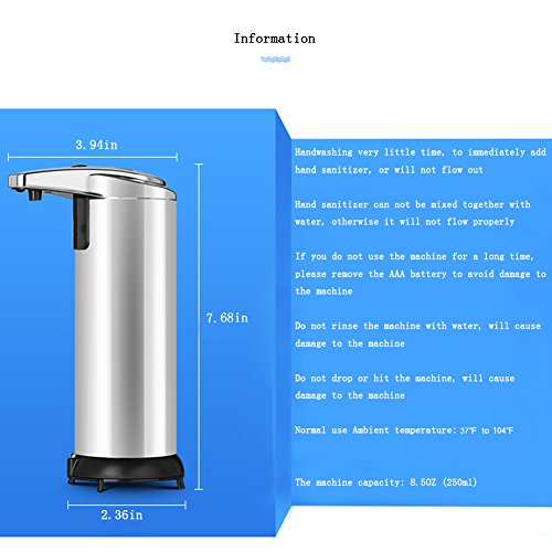Premium Automatic Touchless Soap Dispenser - Fingerprint Resistant Brushed Stainless Steel Touchless ,Waterproof Base.