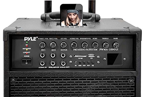 - Title : Pyle PWMA1090UI Wireless and Portable PA Speaker Sound System, Rechargeable Battery, USB/SD Readers, Radio, 800 Watt, Includes Handheld & Lavalier Mics