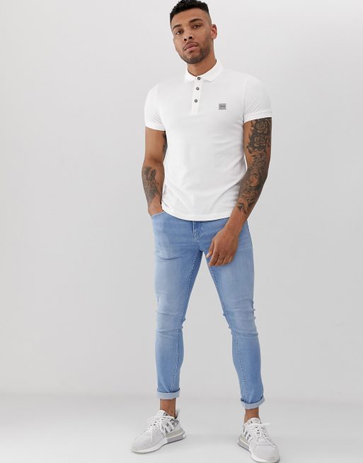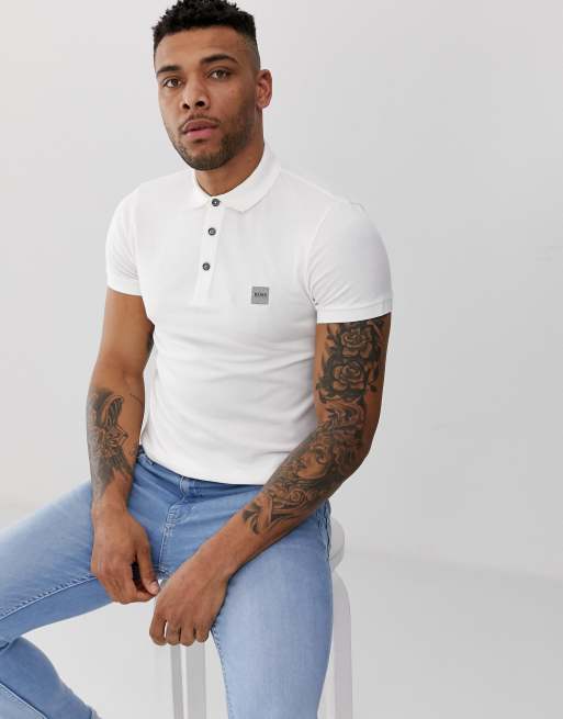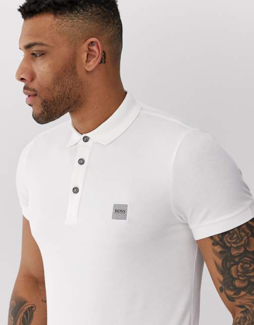 BOSS Casual Slim Fit Logo Polo Shirt in White