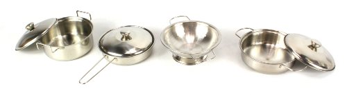 - Title : Mini Chef 11 Piece Metal Diecast Toy Kitchen Utensils Kitchenware Play Set, Comes w/ 2 Pots, Pan, 3 Lids, Colander, Utensils (Colors May Vary)