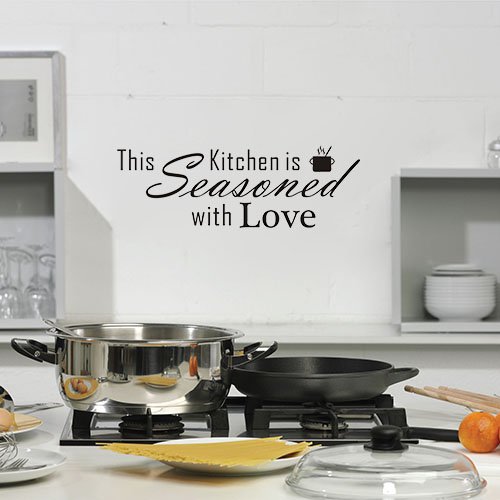 This kitchen is seasoned with love Vinyl Wall Quotes Stickers Sayings Home Art Decor Decal (22" Wide * 7" High) Matte Black