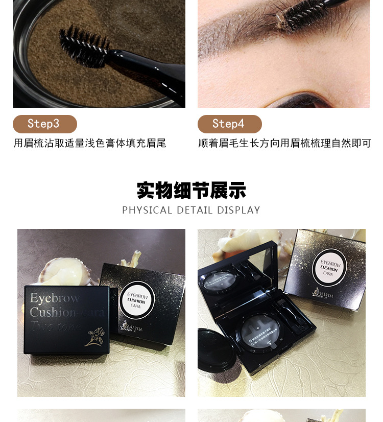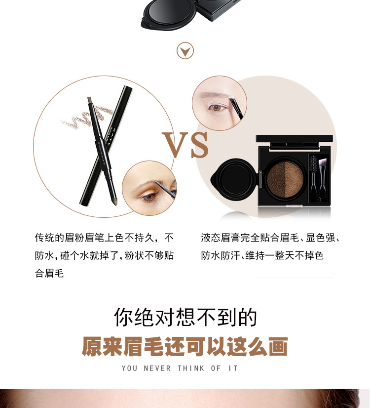 Lasting Quick-acting Two-color Eyebrow Cream Air Cushion Waterproof with Eyebrow Comb Eyebrow Brush