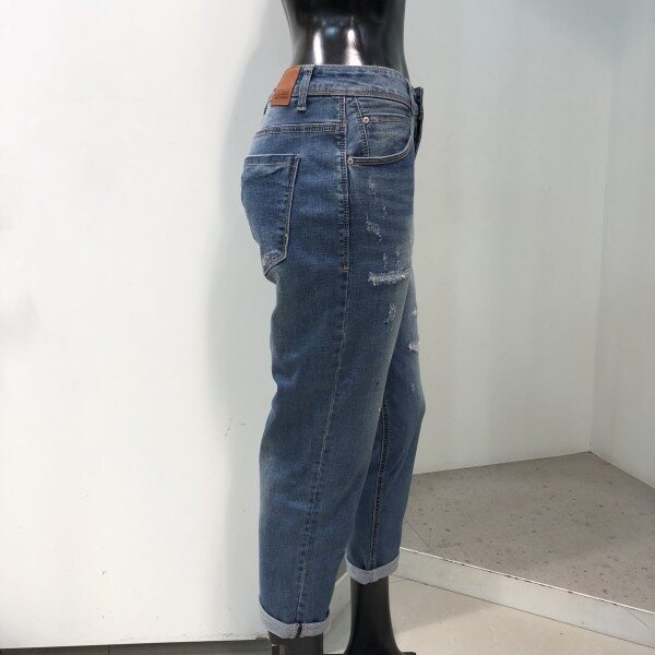 전체적으로 여유가 있으면서 앞뒤 밑위길이가 길어, 골반에 살짝 걸쳐 루즈하게 착용해야 핏감을 제대로 살릴 수 있으며 롤업의 형태로 코디하면 멋스러운 제품입니다.
