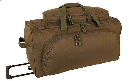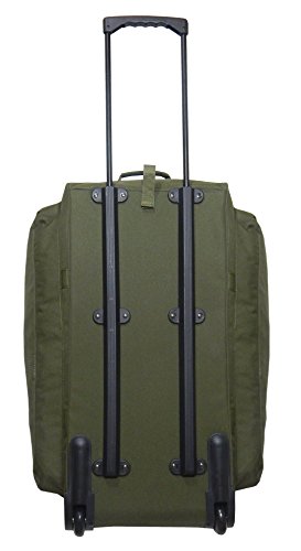 -. Binding : Misc. -. Brand : Military Lage Company -. Color : Olive -. Department : mens -. EAN : 0021676720672 -. Feature : 30 x 15 x 14 / 6300 Cubic Inches / Constructed Of 600 Denier Polyester / Locking Telescopic Handle / Roller Blade Wheel System -. Label : Military Lage Company -. Manufacturer : Military Lage Company -. ProductGroup : Apparel -. ProductTypeName : BAG -. Publisher : Military Lage Company -. Size : Medium -. Studio : Military Lage Company -. Title : Olive Drab Rolling Duffle Bag -. UPC : 021676720672