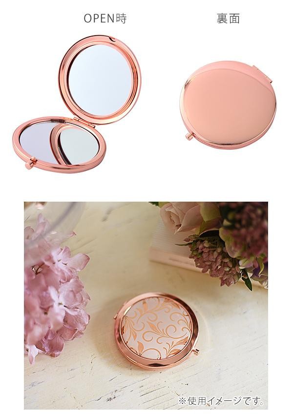 | アラベスク柄がアクセントとなり、可愛くなりすぎず上品な雰囲気です。平面鏡と拡大鏡の2面仕様なので、メイク直しの際も便利です。 |