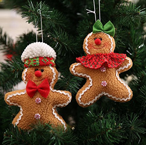 Winzik Christmas Pendant, 5.9 x 4.7 inches, Cute Cartoon Gingerbread Cookies Doll Christmas Tree Hanging Ornaments for Festival Party Decoration (2pcs/set)