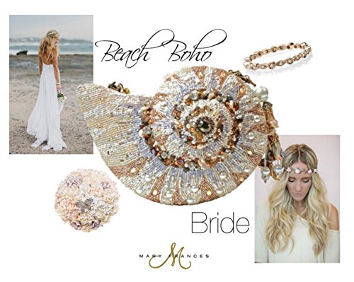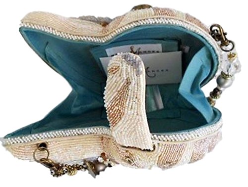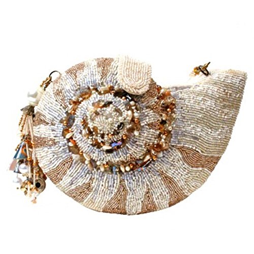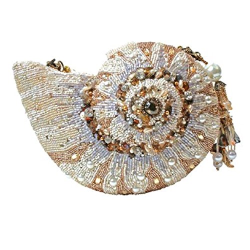 A unique Mary Frances shell handbag, it is a symbol of expansion with elegant hand-picked rhinestones and beads to embody the pastoral serenity of the ocean. This convertible clutch is both functional and fashionable with a large interior. W x D x H: 8" x 2" x 5" Handle Strap Drop: 6" Removable shoulder strap drop length: 15"