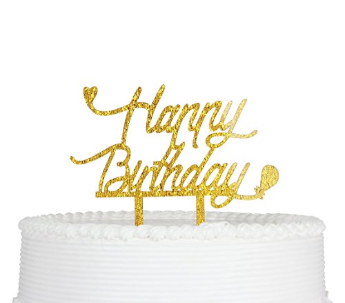Happy Birthday Cake Topper, Premium Quality Gold Glitter Acrylic Birthday Party Decoration Supplies with Cardboard Packaging Gold