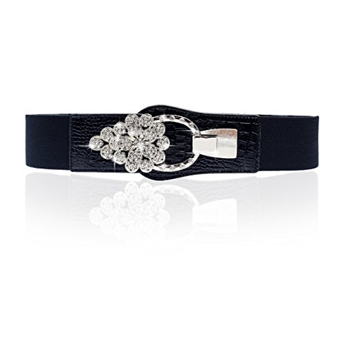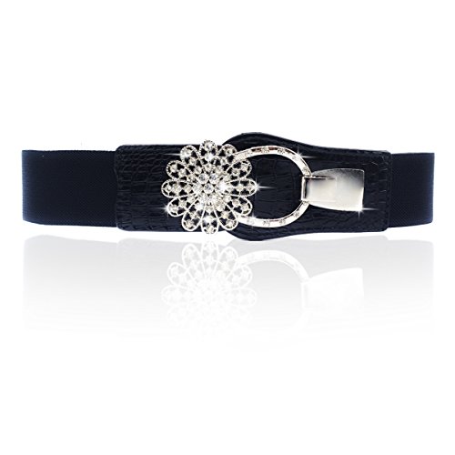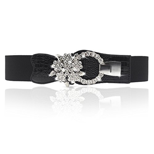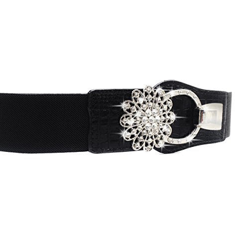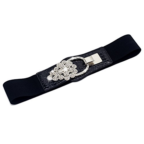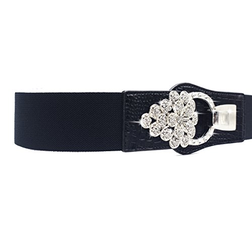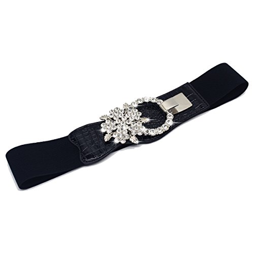 Women's Elastic Stretch Waist Belt Rhinestone Buckle Cinch