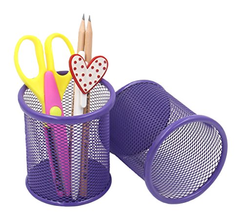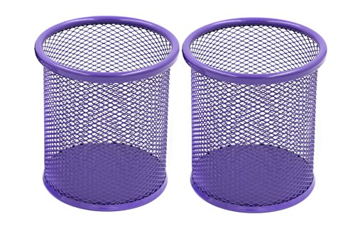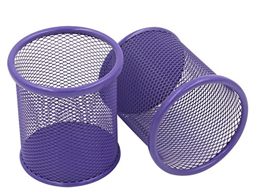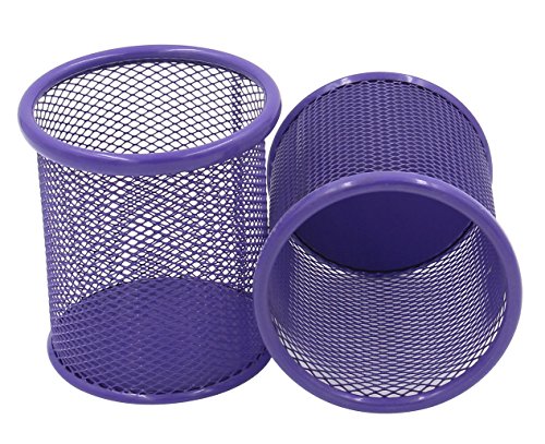 EasyPAG 2 Pcs 3.5 inch Round Mesh Steel Pencil Holder , Purple