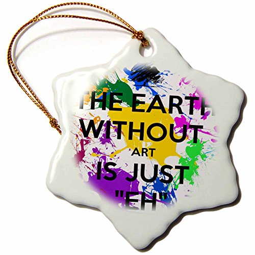 3dRose orn_159623_1 The Earth without Art is Just Eh Artist Art Teacher Professor Snowflake Porcelain Ornament, 3-Inch