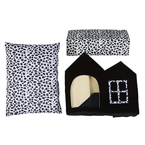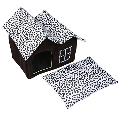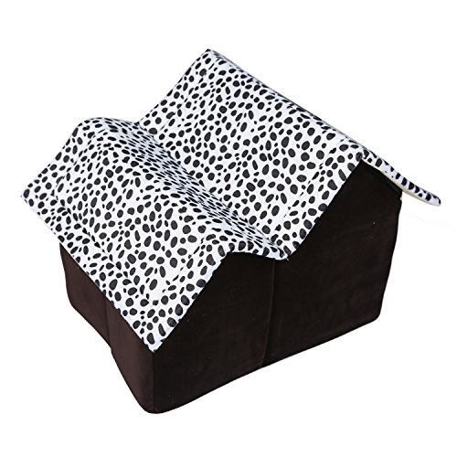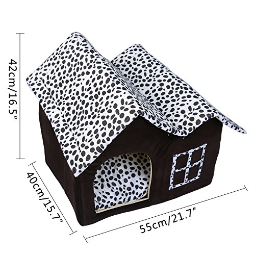 -. Feature : Colour-Coffee Black / Size of house-55 X 40 X 42 CM Size of door-20 X 22 CM / Material Super soft short plush High-density foam / Suitable for dogs under 5kgs such as Teddy , Poodle ,Schnauzer Pekingese,Bichon Frise ,Papillon and so on / Please kindly check if this size will fit your pets, thank you