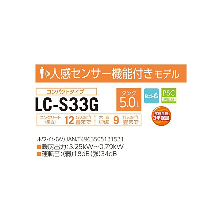 원본상품명:TOYOTOMI (トヨトミ) 石油ファンヒタ 【木造 9 コンクリト 12】 人感センサ搭載 (日本製) ホワイト LC-S33G(W)
