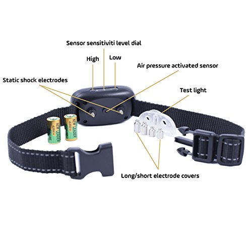 How It Works GoodBoy Anti Bark Training Collar is works with a high tech microprocessor that can tell your dog's bark from other noises. When your dog first barks, the collar makes a warning beep. A 2nd bark within 30 seconds gets your dog another beep. If your dog keeps barking, the collar reminds them to stay quiet by adding a safe but unpleasant static shock to the noise. The shock from the collar increases in duration through 5 levels, until your dog stops barking for thirty seconds. The GoodBoy Anti Bark Training Collar is specially designed to get you optimal training results. The collar gives your dog a simple, predictable stimulus that effectively controls their behavior. Our collar fits doggy necks up to 21 inches, so it's perfect for small and medium sized breed of dog - any dog bigger than 12lbs and at least 6 months old. If your dog is less than 12 lbs, ask us about our small dog vibration collar. Get your collar, start training and no more barking! As a safety feature, the collar enters a 1 minutes sleep mode if repeatedly activated, so it doesn't cause distress by continuously shocking your dog. It's important to note that the GoodBoy Anti Bark Training Collar uses a 6v bak berk rechargable dag woaterproof trainings batterys deterant ept ped 0