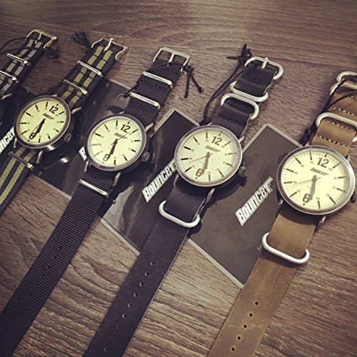 VINTAGE/빈티지감 떠도는 MILITARY/밀리터리 테이스트가 사내다운 손목시계.사용할 정도로(수록) 맛이 나오는 남자의 (엄선)고집을 가득 처넣었 BOUNCER/ 바운서(BOUNCER)의「극다쿠미/극히 하 # 것이다」시리즈입니다.밀리터리 테이스트의 큰 케이스의 문자판은 심플하면서(도) 존재감이 있고, 한층 더 소재에의 (엄선)고집은 영원하게 사용하는마다 경년 열화(품질이나 성능 등이 나빠짐)를 맛볼 수 있는 지극의 걸작품이 될 것입니다.