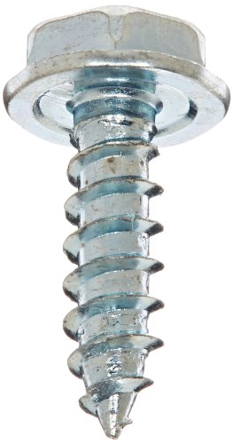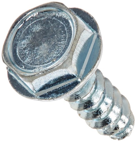 Steel Sheet Metal Screw, Zinc Plated, Hex Washer Head, Hex Drive, Type A, #6-18 Thread Size, 1/2" Length (Pack of 100)