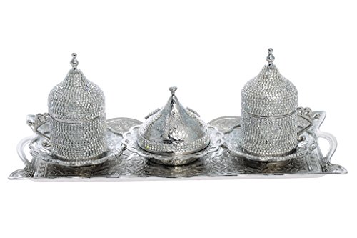 (Interway Trading)/Kitchen Dining/Tableware/DIRECT FROM USA/Handmade Turkish Coffee Espresso Serving Set Crystal Coated Cup (Serve 2 person) (Silver Tone)