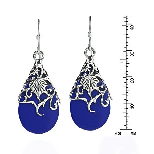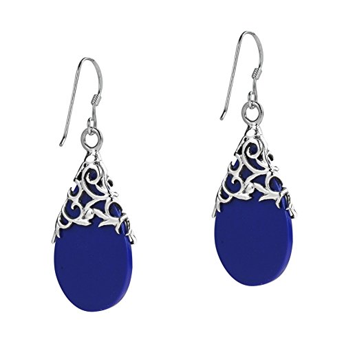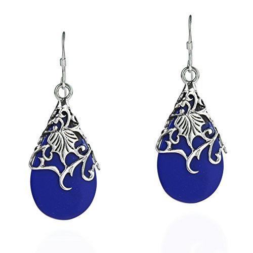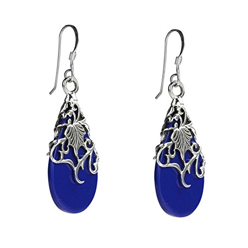 A floral vine of .925 sterling silver en-wraps a teardrop shaped simulated blue lapis-lazuli in this amazing design by Thai artisan Goong. These earrings are a perfect compliment to your style and natural beauty. PLEASE NOTE: The handcrafted nature of this product will produce minor differences in design, sizing and weight. Variations will occur from piece to piece, measurements may vary slightly.AERAVIDA works directly with gifted and talented Artisans from all over the world. At the core of our philosophy is fair trade and fostering a sustainable future for our Artisans.