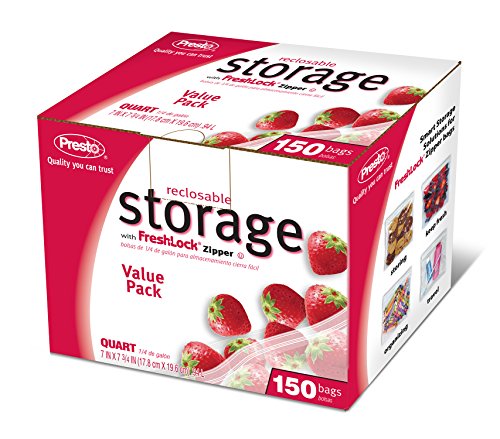 Storage Bags Zip Lock Quart 150 Bags - Presto (Leak Resistant Multi-Track)