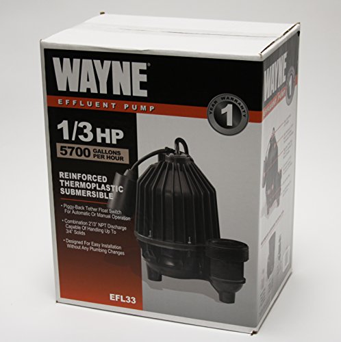 WAYNE EFL33 Thermoplastic Submersible/Effluent Pump With Piggy Back Tether Float Switch