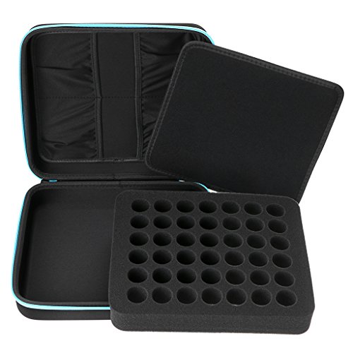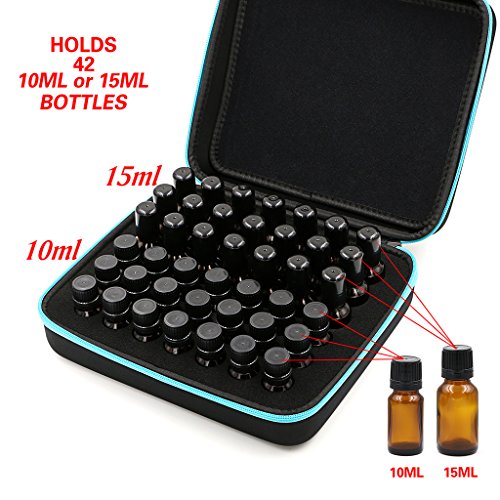- HOLD 42 BOTTLES! - This Essential Oils Carrying Case will hold 42 of your 5ml, 10ml or 15ml bottles. Carrying, store and hold your favorite doTerra, Young Living or other essential oil vials and keeps them organized with foam insert. Great for travel and much lighter than aluminum or metal cases! Bottles not included.