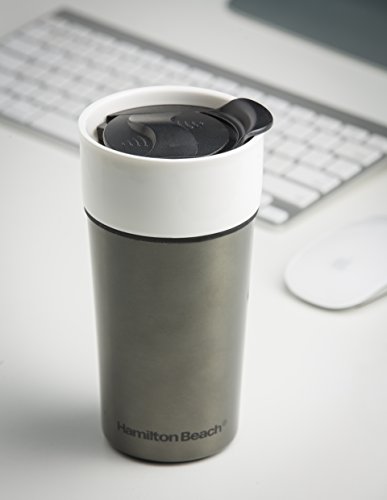 Hamilton Beach ceramic Stainless Travel Mug, 14oz, 2 Pack Set, , Stainless Steel/Gunmetal