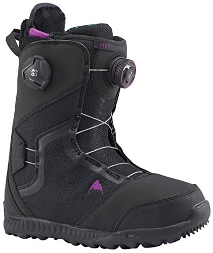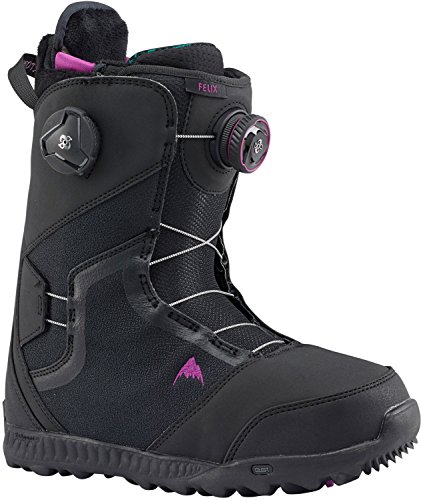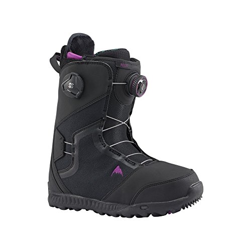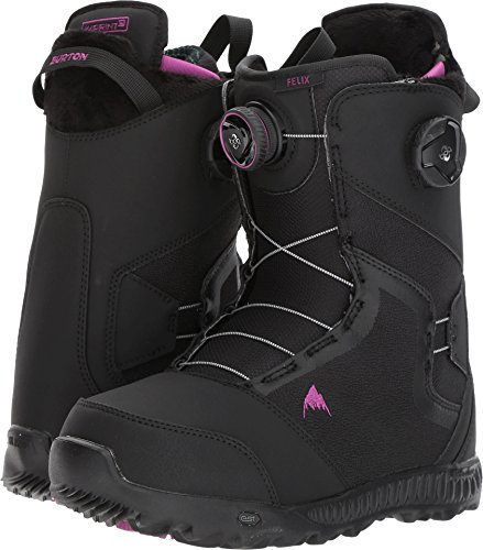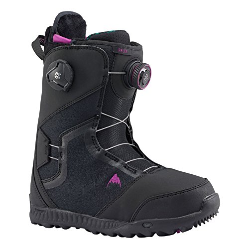 Studio : Burton Publisher : Burton Binding : Misc. Product Description The Burton Felix boot reformulates the top-of-the-line DNA of our Supreme boot into an all-around performer that's slightly softer and more forgiving on your finances. Fully loaded, it boasts the convenience and sure fit of the Boa closure system featuring Burton-exclusive New England Rope, and dialed in with the tri-zonal tightening of Lockdown Tech, which wraps the whole ankle with the click of a wheel. Calves remain comfy in the Focus Cuff, not to mention the broken-in feel of Total Comfort, a feature you can't find elsewhere but Burton. Revved up with DRYRIDE Heat Cycle and Sleeping Bag heat-reflective foil, these are the boots that pro rider Kimmy Fasani depends on to keep her feet warm and dry in the most challenging conditions. 0