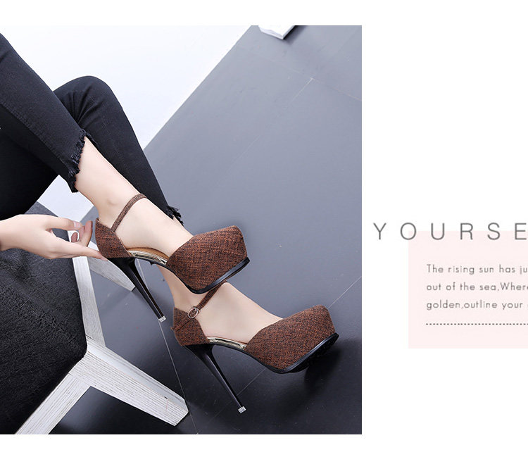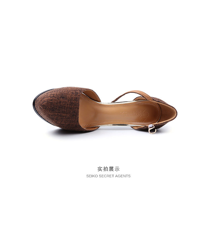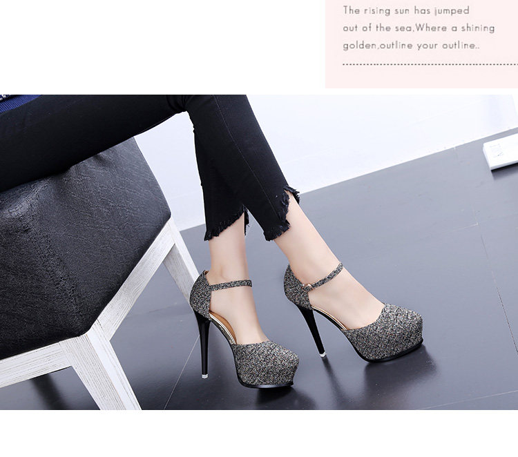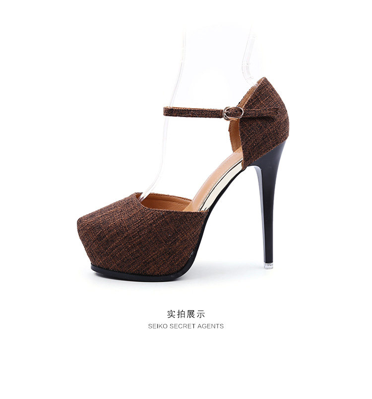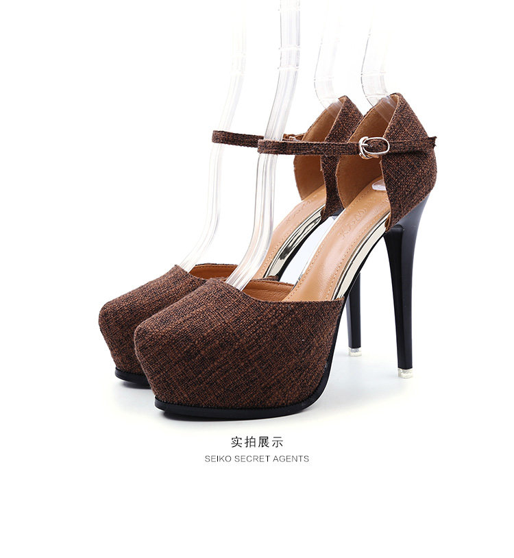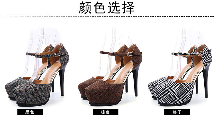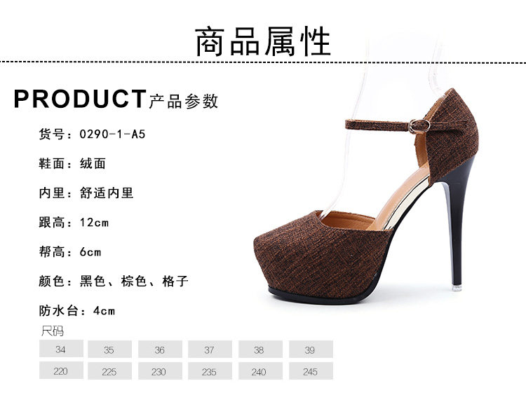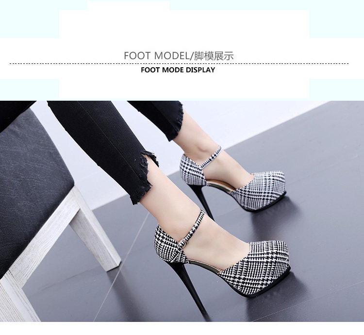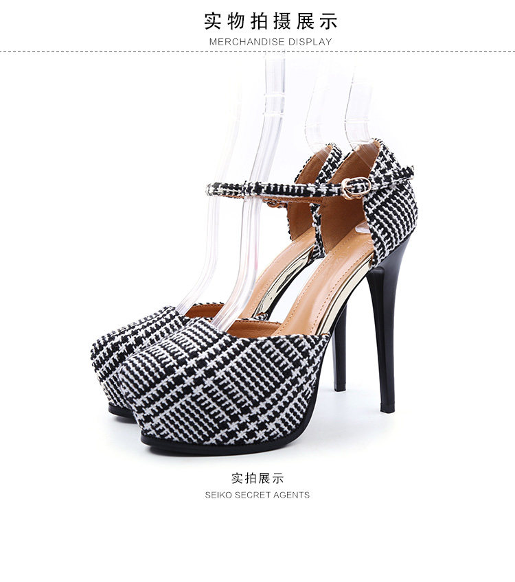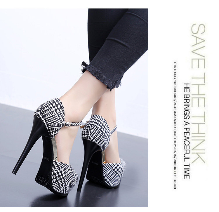 超高跟防水台中空单鞋12cm超高跟夜场高跟鞋一字扣春秋千鸟格潮鞋