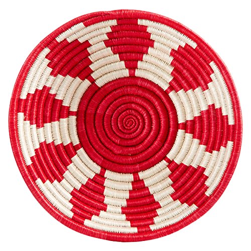 Rwanda 10th Anniversary Small 9-in Arrows Woven Fruit Bowl, Red and White