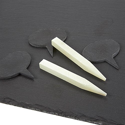 It's time to get your food party started and your guests well-fed with this beautiful slate serving set with cheese knives. The slate board itself offers a beautifully rustic surface perfect for serving hors d'oeuvres, charcuterie and cute little desserts. Constructed of natural slate, each board is made with care and quality. The handles on both sides allow for easy transport, for indoor and outdoor events. This set also includes four distinctive cheese tools and special chalk pens for writing directly on the board and the included markers, for providing your guests with the ultimate culinary experience!