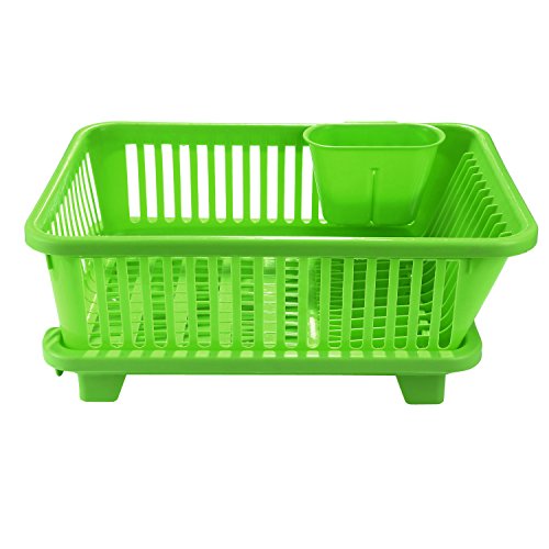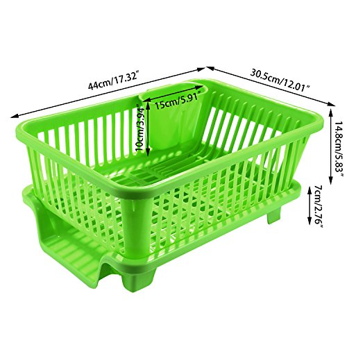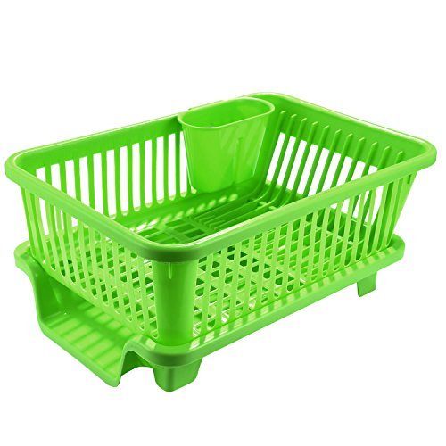 Dorfin 3-piece Sink Set Dish Rack Drainer Plastic Dish Rack with Drain Board and Utensil Cup (Green)