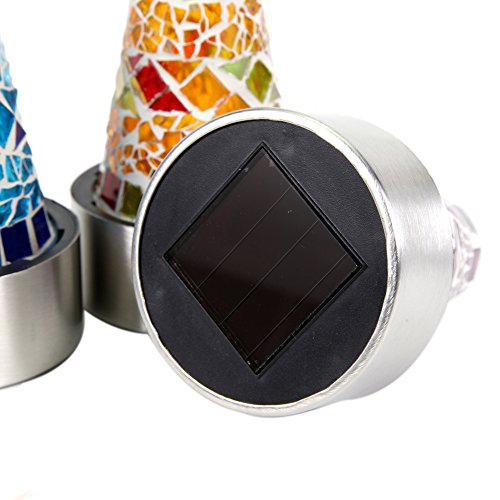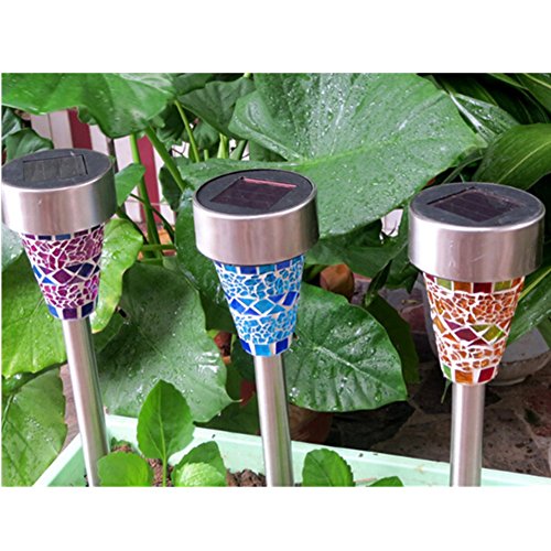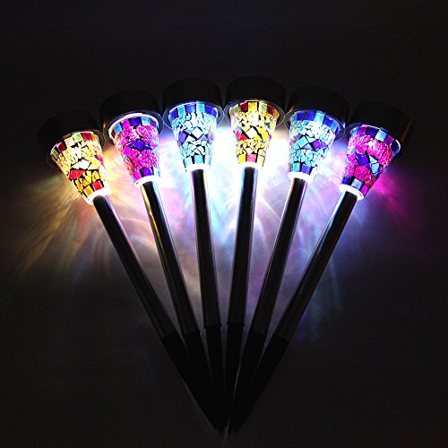 The package includes 6 pieces of this versatile solar powered mosaic border post lights for gardens and decorating purposes. It can easily be a great gifting proposition as well.