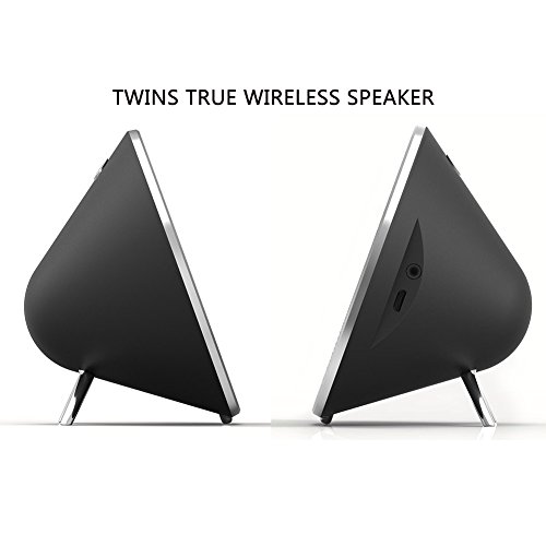 -. Feature : True Wireless: New Bluetooth 4.0 Technology allows you to Connect wirelessly up to 33 feet away.True Wireless speakers will give you a powerful experience. With sleek matte black finish, dual pairing technology, and 2 x5 Watts mini home speaker system produce Surround Sound Stereo / Buddy System: Any Two speakers can be connected together by one phone to achieve the left channel and right channel and also can function independently with each providing full stereo sound from their own source of music / 15-hour playtime, For Apple iPhone, iPad, iPod, MacBook, Samsung Galaxy s4 and s5, Galaxy Note, Amazon Kindle Fire HD, HTC Droid, Nexus 7, Nexus 6, and all mobile, cell phone, laptop, computer, and car. / Built-in Li-Ion Rechargeable Battery for up to more than 15 hours of playtime. Built-in microphone for hands-free speaker phone calling Easy to pair. / Devices can be connected with Bluetooth or 3.5mm auxiliary input