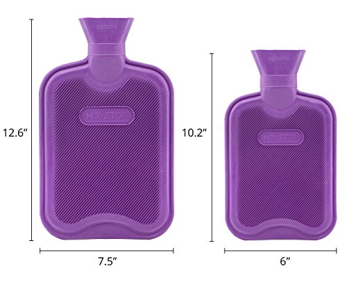 - This hot water bottle is manufactured to B.S.1970:2012 safety standards to ensure maximum safety. - Because it is made from natural rubber, some rubber smell is normal. Just put it in a ventilated environment for few days and the smell will disappear. - The classic design of this classic home remedy bottle makes it the perfect treatment for aching muscles. - The hot water bottle can keep warn about 6 hours if you use it in a blanket or quilt. If you use it outdoors, it will stay warm for 2 hours or less. CARE INSTRUCTIONS To ensure maximum life for the hot water bottle please follow these instructions: 1 - When filling the hot water bottle, DO NOT USE BOILING WATER. This may damage the rubber and could also burn your skin. 2 - Fill only to two-thirds capacity maximum. When filling, hold the bottle in an upright position and fill slowly to avoid the hot water from splashing back. 3 - Before use, allow up to 20 minutes for the bottle to reach its maximum temperature. 4 - Prevent contact with hot surfaces. IMPORTANT Not suitable for children under the age of 36 months. Handing should always be carried out by an adult. Check stopper for wear and tear damage at regular intervals. Bottles should be replaced after two years of use. Hot water bottle can cause burns - avoid prolonged direct contact to skin. Please click our storefront link next to the title on the top for more sizes, styles and combination options. 0 |