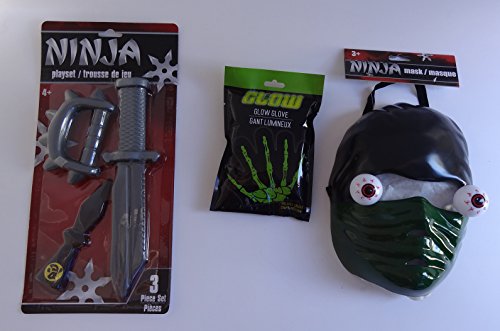 -. Title : Ninja Turtle Mask Bundle - 3 Items: Mask, Weapons, Glow Skeleton Hand