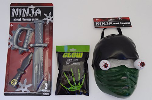 -. Feature : Bulging Eyeballs Green Turtle Ninja Mask Playset Bundle / Playset Knife Dagger Iron Knuckles / Glowing Skeleton-Hand Glove