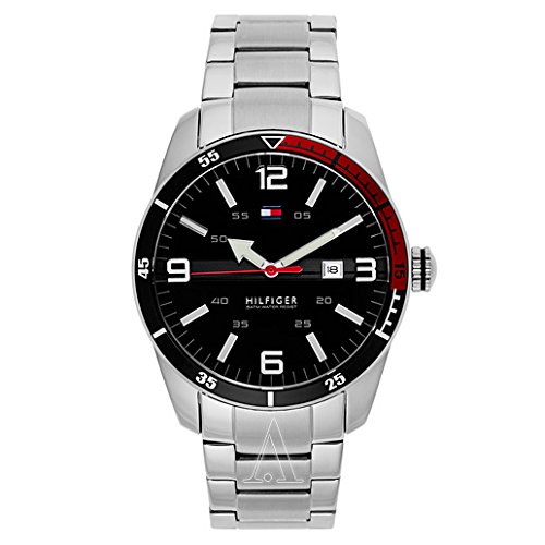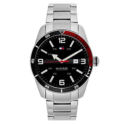 -. Binding : Watch -. Brand : Tommy Hilfiger -. Color : Silver/Black -. Department : Tommy -. EAN : 0885997089241 -. Feature : Casual watch with black-and-red bezel and round dial with arrow hands and date window at 3 o'clock / 42 mm stainless steel case with mineral dial window / Quartz movement with analog display / Silver-tone band featuring deployment clasp with push-button / Water resistant to 50 m (165 ft) -. IsAdultProduct : 0 -. Label : Tommy Hilfiger -. Manufacturer : Tommy Hilfiger -. Model : 1790916 -. MPN : 1790916 -. PackageQuantity : 1 -. PartNumber : 1790916 -. ProductGroup : Watch -. ProductTypeName : WATCH -. Publisher : Tommy Hilfiger -. ReleaseDate : 2013-03-25 -. Size : Standard -. Studio : Tommy Hilfiger -. Title : Tommy Hilfiger Men's 1790916 Casual Sport 3-Hand Stainless Steel Watch -. UPC : 885997089241