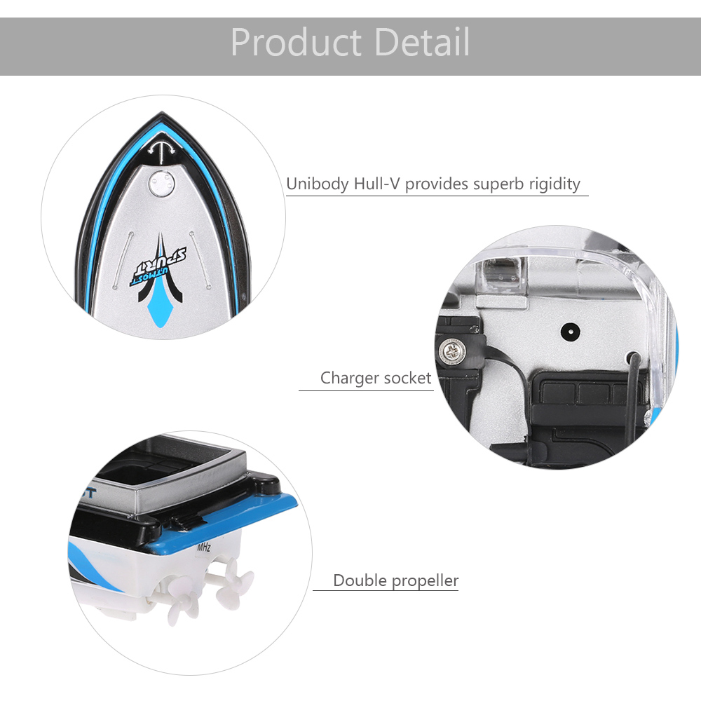 Use only the connective charger's line included in the package to charge battery in the mini boat.