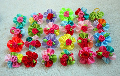 -. Feature : handmade Flowers pet hair bows. 10pcs/pack(each package will include a tag as free gift) / 3.5-4cm in width . backside with rubber bands / material: Nylon Cotton, rubber bands, 100% in perfect condition / mixed colors as picture shows, Bright Bows for Holidays, / Bright and Cute grooming bows for pets