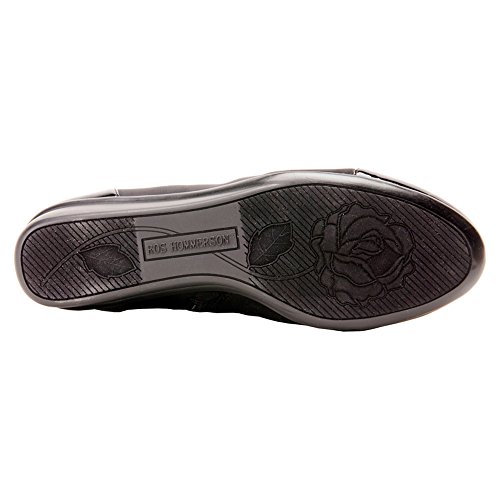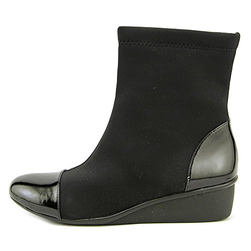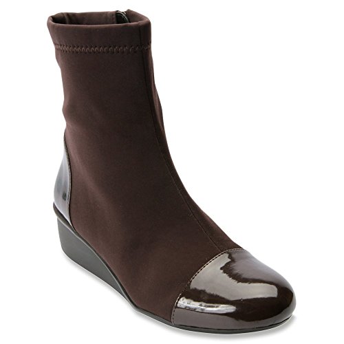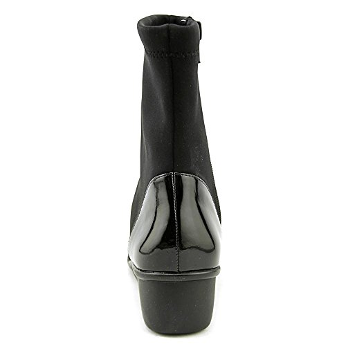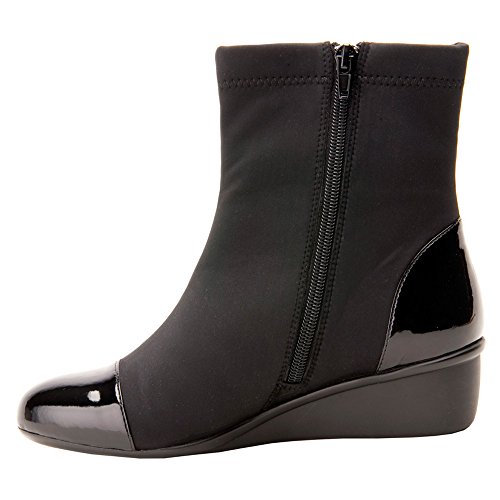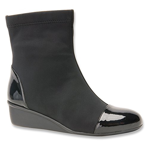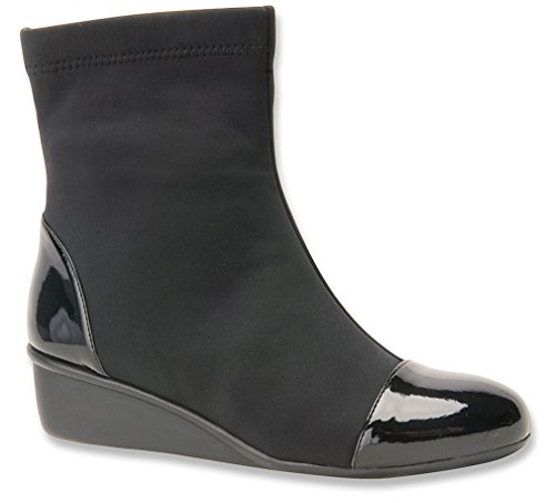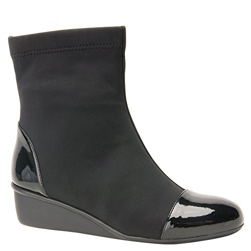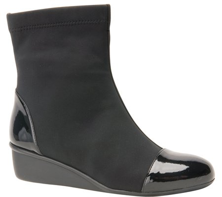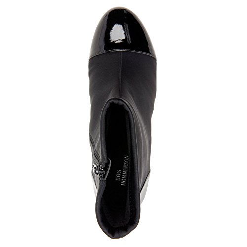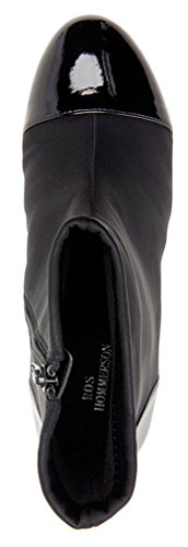 Product Description Heel Height: Approx. 1 1/2' Tall. The Ros Hommerson Easton bootie features a fabric stretch material and a leather toe cap that adds a bit of shine. The Easton is water resistant and sits atop a 1.5" rubber sole for durability and flexibility. 0
