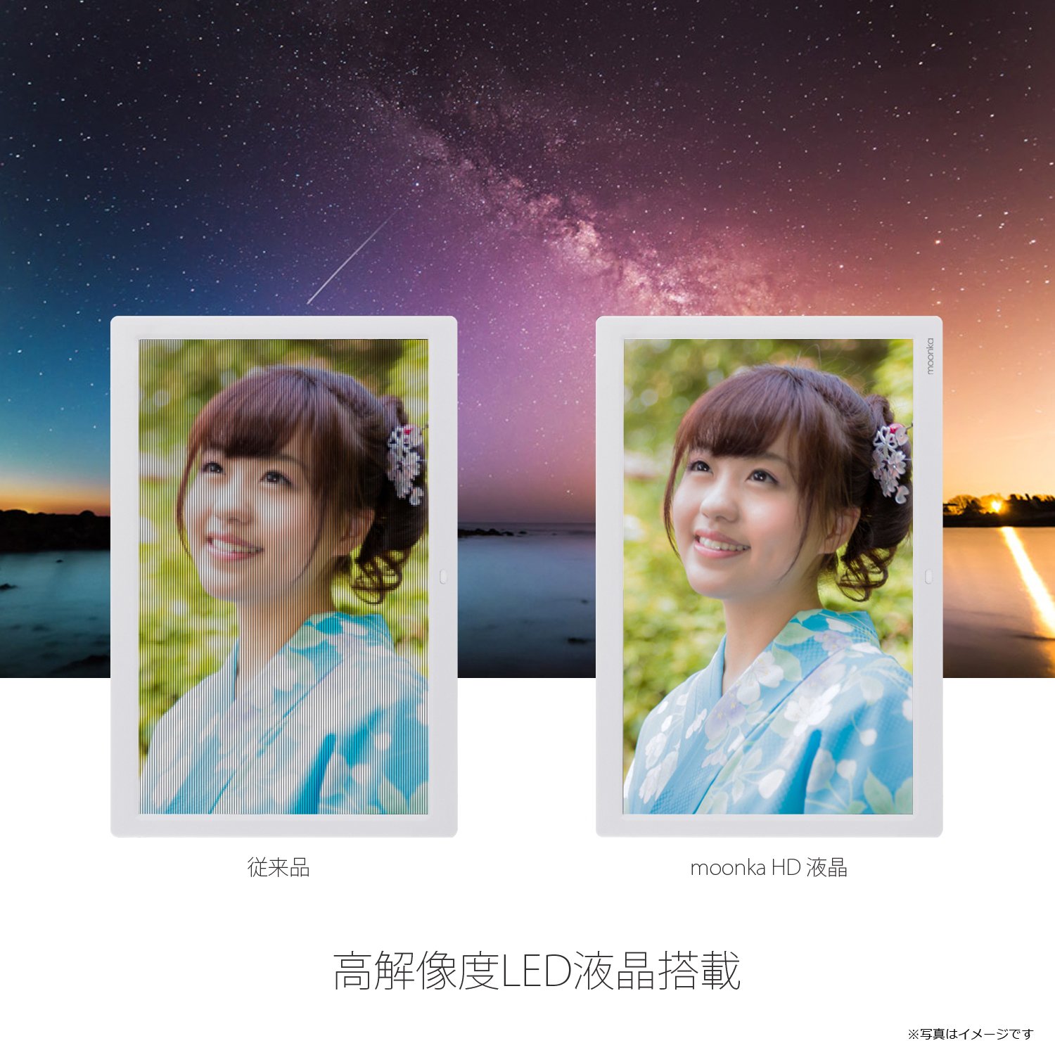 This tabletop and wall-mounted compatible digital photo frame can display digital images with high definition.