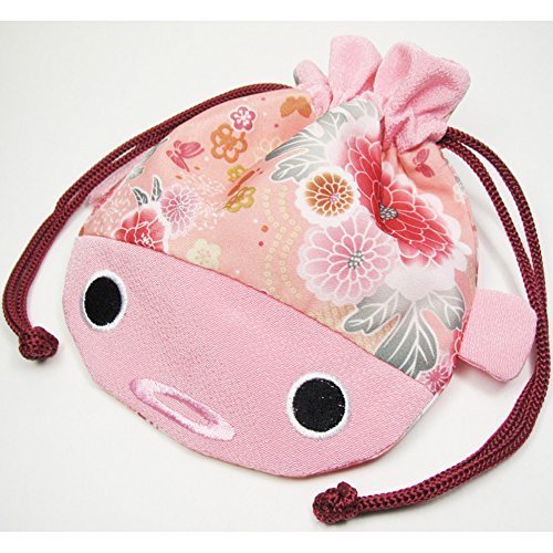 Japanese Kimono Fabric Cosmetic Goldfish Small Purse Kinchaku - Pink Fish Bag