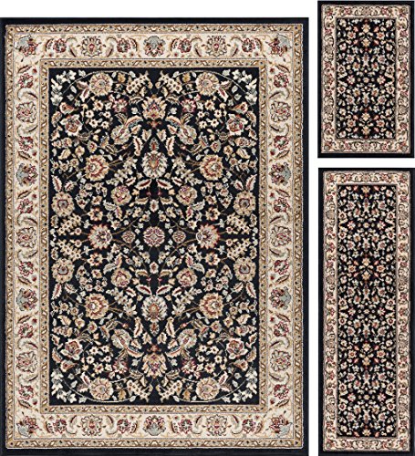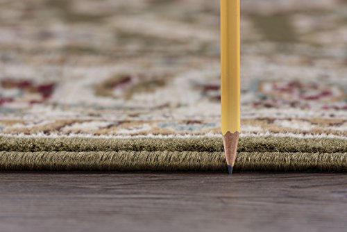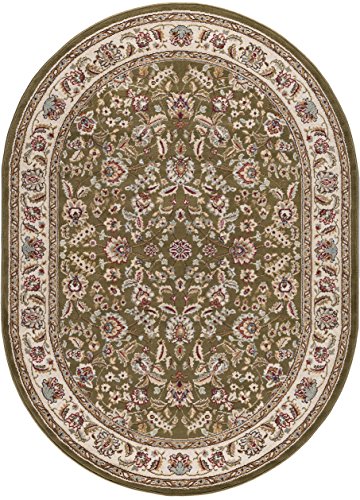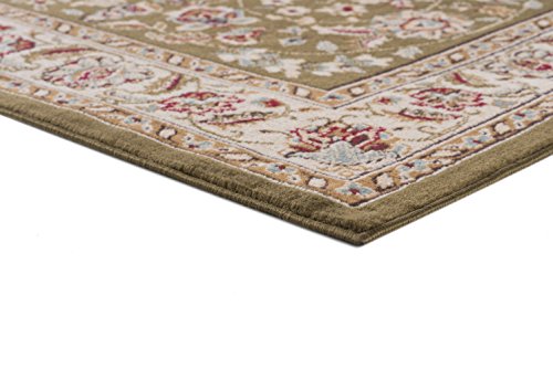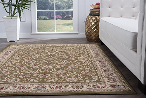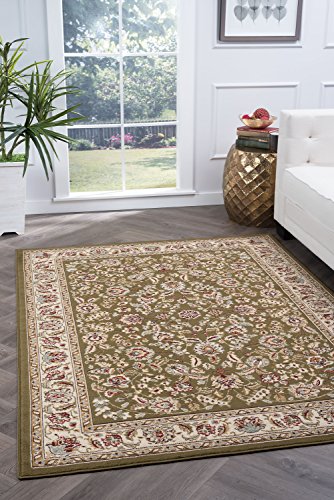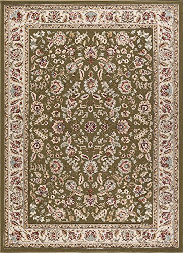 A luxurious and intricate oriental design define this traditional area rug. Perfect to add a touch of refinement to any room. Green background with gold, ivory, bronze, blue and black. Available in several individual sizes and as a three piece set so you can harmonize your theme throughout your home. It is easy to care for, vacuum regularly to maintain its appearance. Spot clean as needed with mild detergent, do not dry clean or bleach.Feature